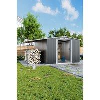 Solve your outdoor equipment and tools storage problem with our storage shed with a mono-pitch roof. Made from corrosion-resistant galvanized steel, it withstands harsh weather conditions, so it requires minimal maintenance. The spacious interior features a sliding door for easy access to large tools, promoting efficient organization. 4 louvered vents prevent stifling heat and bring in natural light. Available in a variety of sizes, you can tailor it to your backyard.