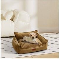 Use this sofa-style pet bed to create a cosy and dedicated space for your furry friend in the comfort of your home. With its simple yet charming design and brown tones, it effortlessly blends into your home decor. The armrests and backrest not only provide a sense of security for your pet, but also offer excellent support and cushioning for their head and neck. Filled with thick and soft PP cotton, ensuring your furry companion stays comfortable and is kept away from hard floors. Whether for daytime naps or nighttime rest, this bed offers the ideal resting space for your pet. | Living and Home Brown Washable Pet Sofa Bed