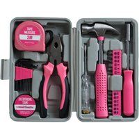 Designed for both professionals and DIY enthusiasts, this 24-piece tool kit offers unmatched durability and convenience for a wide range of tasks. Equipped with essential tools like a 2m retractable measuring tape, claw hammer, mini hex key wrenches, combination pliers, bit driver handle, 12 screwdriver bits, voltage tester pen, and electrical insulation tape, it is perfect for home maintenance and DIY projects. Built to withstand wear and impact, this set is ideal for demanding tasks such as repairs on outlets, furniture, computers, and appliances. | Living and Home 24 Pieces Home Tool Kit Household Repair Tools with Grey Storage Case in Pink - Manufacturers part number: Living and Home_0747674528354
