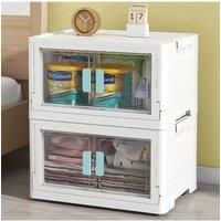 This set of 2 storage boxes is designed with practicality and durability in mind, making it ideal for organising a wide range of small items. Each box features a sealed, dust-proof construction to ensure that contents remain clean and protected, while the transparent front panel allows for easy identification of stored items without needing to open the box. Built to last, this set boasts a robust design with a strong load-bearing capacity, safely supporting heavier items without risking deformation. These boxes can be stacked or arranged side by side, offering versatile storage solutions. Furthermore, their edges are elegantly rounded, preventing accidental scratches or bumps. This set offers an excellent combination of functionality and convenience for all your storage needs. | Living and Home 2 Pieces Collapsible Stackable Storage Boxes Wardrobe with Upper Lid in White