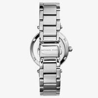 Strap Material: Stainless Steel Product Features: Case Size: 33 mm Warranty: 2 Years Brand: Michael Kors Case Material: Stainless Steel Gender: Ladies Additional Features: Day, Date Model: MK5615 Water Resistance: 10 ATM/100 M