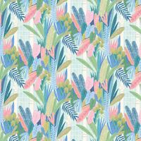 Inspired by Glasgow’s botanical gardens, the indoors and outdoors come together to form Glasshouse. Layers of hand painted tropical plants overlap, with glimpses of the botanical glasshouses’ architecture peeking through the gaps. The geometric grid of the glasshouse windows serves as a playful contrast to the organic forms of the tropical leaves, resulting in a harmonious and lively blend of shape and form. - Manufacturers part number: Ohpopsi_GHS50151W