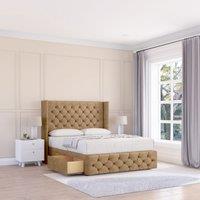 Luthor Wingback Divan Bed Luxury, Elegance & Practicality Elevate your bedroom with the Luthor Divan Bed, a perfect blend of timeless sophistication and modern practicality. Expertly handcrafted in our Yorkshire factory, this premium divan bed showcases the iconic Luthor Chesterfield design, featuring deep buttons, plush padded cushioning and meticulous hand-stitched detailing. Designed to provide both aesthetic appeal and superior comfort. The mattress is a modern 13.5g coil sprung mattress using abund...