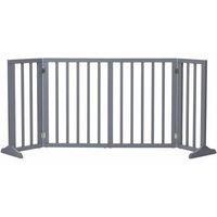 Secure dog gate: Keep your dogs safely contained indoors with this adaptable wooden dog gate. Safe for large dogs: The tall barrier keeps bigger breeds secure. Strong, durable build: With MDF construction for long-lasting use. Modern grey finish: Neutral colour and simple design to fit any home. Flexible placement: Shape the foldable 4-panel design to fit doorways, hallways, or open spaces. Freestanding: No wall mounting or installation required - just unfold and position!