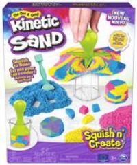 The Kinetic Sand Squish N Create will get your creativity flowing. This Kinetic Sand set is packed with everything you need to create sand surprises: a total of 382g of Blue, Yellow and Pink Sand. Let it flow through your hands its so satisfying, you wont be able to put it down. Attach the squisher handle to different tools, like Squish, Cut and Shape. SQUISH AND CREATE SURPRISE DESIGNS: Theres so many ways to play with the Squish N Create Playset. Fill the octagon mould, layer sand, squish it, slice it... - Manufacturers part number: 6065527