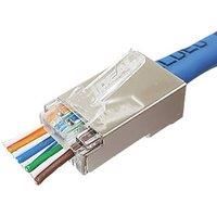 Conductors fully seated above pin contact. No opens due to short / misaligned conductor. 3-pin IDC contact, 50 gold-plated over 150 nickel. Secured in place. Pair twists maintained within 6.4mm of contact. Jacket seats past strain relief tab. Wires can be easily verified before trimming. Suitable for Cat 5e Cable Shielded - Manufacturers part number: 134HV