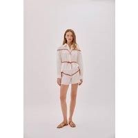 The Colette Shorts feature a playful and eye-catching design with contrast red piping, adding a fresh pop of colour. The piping ties at the hip with decorative red tassels, creating a relaxed and fun beach vibe. An elasticated waistband ensures a comfortable fit, while the A-line cut gives these mini shorts a flattering, slightly flared silhouette. The Colette Shorts combine comfort with style, offering a casual yet stylish look with a touch of boho charm, ready to be paired with its matching Colette Ec...