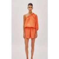 Our Citrus Orange Linen Shorts fall at a flattering length and have an elasticated waistband, creating a loose, relaxed fit that doesn't compromise on style. | Labeca Women's Capri Citrus Linen Shorts in Orange | Size: Small