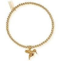 ChloBo GOLD CUTE CHARM HUMMINGBIRD BRACELET Known as the 'messenger' the hummingbird invites us to enjoy the sweetness of life, keeping negativity at bay. Hummingbirds are thought to provide hope for love and joy while serving as a reminder to keep on moving forward. Fashion Jewellery Type: Bracelets Metal Type: Gold Plated Silver
