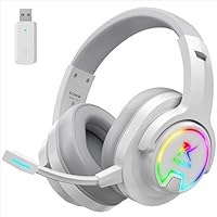 PG3 2.4GHz Wireless Gaming Headset for PS5, PC, PS4, Mac, Switch, Bluetooth 5.4 Gaming Headphones with Noise-Cancelling Mic, Gaming Headset with Cool LED, 7.1Surround Sound, 48H Battery, Pure White