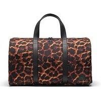 Herschel Herschel Novel Duffle - Digi Leopard Travel tough and cleverly organized, this is the ultimate road trip duffle, built with our signature shoe compartment for that spare pair. It fits perfectly the overhead bin or the trunk of your car. Material Content: Polyester Washing Instructions: Wipe Clean Waterproof zippered closure protects your essentials Low profile vegan leather handles Removable smooth webbing shoulder strap with EVA padding for comfortable carrying Side sleeve pocket