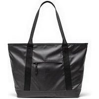 Herschel Alberni Tote - Black Material Content: Polyester Washing Instructions: Wipe Clean 100% recycled polyester, excluding trims Matte TPE coating Liner made from 100% recycled polyester Padded 15"/16" laptop sleeve with self-fastening closure Main compartment with waterproof zipper Smooth webbing top-carrying handles