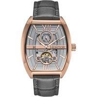 The watch comes with 316L Surgical-Quality Stainless Steel Case,Jeweled Automatic Movement,Jewel Bearings: 21 Jewels,36-Hour Power Reserve,Beats per Hour (BPH): 21600/Hour,Sapphire-Coated Mineral Crystal,Semi-Skeleton Dial,Observation Caseback to view Movement,Logo-Engraved Crown,Crocodile-Embossed Genuine Leather Strap,Logo-Engraved Stainless Steel Clasp,Luminous Hands,Luminous Markers,24-Hour Sub-Dial,38mm Case Width,5 ATM Water Resistance.