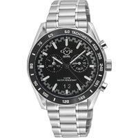 GV2 42901B Men's Freccia Chronograph Swiss Quartz Watch GV2 Men's Swiss Quartz Watch from the Freccia Chronograph Collection 43mm 316L Stainless Steel Case with black inlay Black Dial, Black counters, date at 6, Sub dials at 9 and 3 Screw down crown 316L Stainless Steel Satin and Polished Bracelet With Deployment Buckle Anti-reflective Sapphire Crystal Water Resistant to 100 Meters/10ATM Swiss Quartz Movement Ronda 5020B