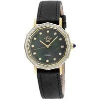 GV2 14515 Women's Spello II Swiss Quartz Diamond Watch GV2 Women's Swiss Diamond Watch for the Spello II Collection 36mm Dodecagon IPYG Case, Diamond cut Bezel 12 Diamonds on Black MOP Dial Push Pull Fluted Crown with Blue Cabochon Stone Handmade Italian Black Leather Strap with Tang Buckle Band width 18mm Anti-reflective Sapphire Crystal Water Resistant to 30 Meters/3ATM Swiss Quartz Movement Ronda 763 - Manufacturers part number: GV2_840840148148