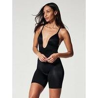 Spanx Plunge Low Back Mid Thigh Bodysuit - Medium Control Suit Your Fancy Plunge Low-Back Bodysuit is the ultimate low-back, low-front solution! Adjustable and convertible straps offer versatility and comfort, whilst sleek shaping fabric works invisibly “back stageinch to ensure your style gets all the applause. Material Content: Body: 51% Elastane, 49% Nylon. Gusset: 80% Nylon, 20% Elastane Washing Instructions: Machine Washable