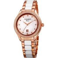 Elevate your wristwear with the Rose lan Timepiece, a perfect blend of elegance and modern sophistication. This exquisite watch features a radiant rose gold ion-plated case, accentuated by a brilliant Swarovski crystal bezel that catches the light with every movement. The sunray-textured dial is adorned with delicate diamond markers, offering a refined touch of luxury. Designed for both style and durability, the rose gold and white ceramic link bracelet provides a seamless fusion of classic warmth and c...