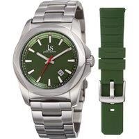 Dynamic versatility meets bold design in the Vortrex Verde. This timepiece features a sleek silver-tone round case paired with a striking green dial, creating a confident and modern aesthetic. The interchangeable silver-tone link bracelet and matching green silicone strap offer the freedom to switch between classic elegance and casual sportiness. Whether making a statement or keeping it low-key, the Vortrex Verde adapts to every move.