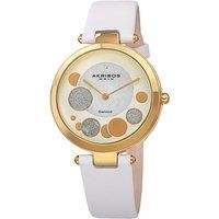 The Celestial Harmony watch is a striking balance of contemporary elegance and celestial inspiration. Encased in a radiant ion-plated gold-tone case, this timepiece exudes luxury and sophistication. The mother-of-pearl dial features an intricate circular pattern with gold and shimmering accents, creating a unique and artistic display. A genuine diamond marker enhances the refined aesthetic, adding a touch of brilliance to the watch. Paired with a bold red leather strap, this piece is designed to make a ...