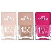 Nails Inc Nails Inc It's Topless The Essential Classics Trio (Value £27) A trio of essential shades for your mani wardrobe in Nails.INC's latest innovation- It's Topless. The 4-in-1 formula with a built in base, treatment, colour and topcoat, combining every stage of your nail routine into just one bottle. Formulated with bio-peptides and glass particles for a glossy chip-resistant at-home gel-like polish finish for up to 6 days of wear. It's your 1-step shortcut to nailing the perfect mani. Shades:... - Manufacturers part number: WS7VX