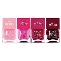 Nails Inc Nails Inc It's Topless Cherry Demure Set (Value £36) A set of classic cherry-inspired shades in Nails.INC's latest innovation- It's Topless. The 4-in-1 formula with a built in base, treatment, colour and topcoat, combining every stage of your nail routine into just one bottle. Formulated with bio-peptides and glass particles for a glossy chip-resistant at-home gel-like polish finish for up to 6 days of wear. It's your 1-step shortcut to nailing the perfect mani. Shades: Allegra is a rose p... - Manufacturers part number: WS7VZ