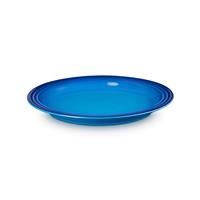 A colourful and contemporary addition to any modern kitchen or dining table, the Le Creuset stoneware 27cm dinner plate in Azure features a recessed base to contain liquids and a raised rim featuring the signature three-ring branding. This plate is oven, microwave and dishwasher safe so is perfect for a busy home for both everyday use or entertaining friends and family. Covered by a Le Creuset 10 year guarantee for added reassurance. All Le Creuset stoneware is safe for use in the microwave, freezer, fr...