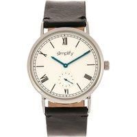 The Simplify The 5100 includes the following features: satin finished metal case, precision quartz movement, non-glare scratch-resistant mineral crystal, satin finish dial, logo-engraved stainless steel caseback, genuine leather strap, logo-engraved stainless steel clasp, seconds sub-dial, 40mm diameter, 3 ATM water resistance.