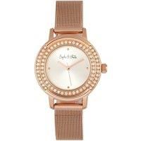 The Sophie and Freda Cambridge includes the following features: polished alloy case , precision quartz movement , non-glare scratch-resistant mineral crystal , swarovski crystal surround bezel, logo-engraved stainless steel caseback , mesh alloy bracelet, logo engraved box with tongue and safety clasp, 28mm case diameter , 3 ATM water resistance.