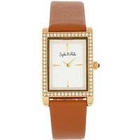 The Sophie and Freda Wilmington includes the following features: polished alloy case , quartz movement , non-glare scratch-resistant mineral crystal , logo engraved stainless steel caseback, swarovski crystal surround bezel, jewel-tipped crown, genuine leather strap, logo-engraved stainless steel clasp, 25mm case diameter , 3ATM water resistance.