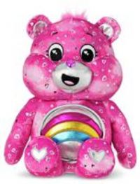 Cheer Bear, the happiest Care Bears bestie, is celebrating the joy of sharing and caring with a special new look Now you can add this unique plushie to your Care Bears collection with the 35cm Collector Edition Cheer Bear plush This special Cheer Bear is designed with bright pink fur dotted with silver hearts all over. Her eyes twinkle with a colourful rainbow and heart-shaped accent, reflecting her cheerful spirit. With shiny silver accents adorning her ears, eyes, paws, mouth, and belly badge, Cheer B...