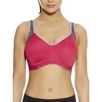 Freya Sonic Moulded Sports Bra. Lightweight spacer cups with wide wiring, a firm underband and J-Hook converter. Average coverage with mid-high support. Product is made of 54% Nylon/Polyamide, 20% Elastane, 26% Polyester and is hand-wash only. | Freya Women's Active Sonic Moulded J-Hook Sports Bra in Pink | Size: 28DD - Manufacturers part number: AA4892