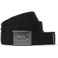 Oakley Mens Ellipse Web Belt Size & Fit One size Length: 113 cm / 44"" Details Mens Ellipse Web Belt by Oakley Black Made with durable woven fabric Custom metal buckle for long-lasting adjustable comfort Ellipse logo on the buckle and a clamp label logo on the strap Material & Care Material Content: 100% Polyester Washing Instructions: Machine Washable - Manufacturers part number: 96185-02E-02E-One Size