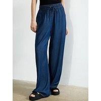 French Connection Floaty Wide Leg Denim-style Elasticated Waist Trousers These denim-style floaty trousers from French Connection are a great addition to the wardrobe. Features wide legs, two side pockets, two back pockets and an elasticated waist with a drawcord. Material Content: 67% Tencel, 33% Ecovero Viscose Washing Instructions: Machine Washable