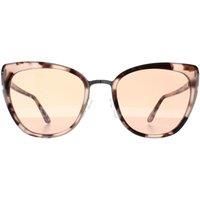 Cat Eye Coloured Havana Brown Mirror Simona FT0717 Sunglasses Sunglasses are an elegant cat eye design with a plastic frame front and matching temple tips. Signature Tom Ford T logos wrap around the outer corners and along the temples.