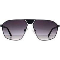 Aviator Shiny Gunmetal Gradient Smoke GU00086 Sunglasses Elevate everyday style with the GUESS GU00086. This modern take on the classic aviator features slim metal frames with bold gradient lenses. Effortlessly stylish and versatile, they bring a polished edge to any outfit. | Guess Men's Aviator Shiny Gunmetal Gradient Smoke GU00086 in Grey