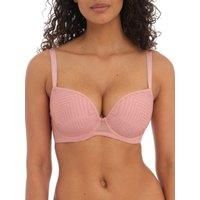 Freya Tailored Moulded Plunge Bra. Stretch geo-lace over lay features a flat finish for no show under clothing. This product is recommended as hand wash only. | Freya Women's Tailored Plunge T-Shirt Bra in Pink | Size: 30FF - Manufacturers part numbers: Freya_0889501557882|AA401131