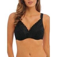 The Raffin Minimiser Bra in Black is designed to combine practicality with refined elegance. Crafted to gently soften the bust shape and reduce projection, it creates a smooth, minimised effect while maintaining a sophisticated look. The collections signature scalloped lace detailing runs along the neckline, enhancing the feminine finish. Floral lace cups are carefully stitched with flat seams, ensuring both comfort and support with a perfectly contoured fit. Lace overlays on the front straps add a touc...