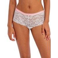 Freya Offbeat Short Brief. With stretch lace, semi-sheer waistband and keyhole detailing. Product is recommended handwash only. | Freya Women's Offbeat Short in White | Size: 10 - Manufacturers part number: AA5456