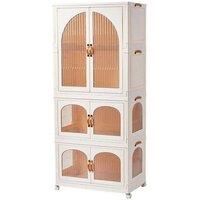 Durable Materials: Tough PP and ABS plastic for long-lasting use. Multi-Functional Storage: Combines wardrobe hanging and two roomy boxes. Generous Capacity: Fits clothes, bedding, toys, and snacks. Large Size: 67cm (W) x 41cm (D) x 155cm (H). Visible Double Doors: Find and grab items in seconds. Easy Mobility: Three wheels with brakes for safe movement. Stable & Stackable: Side buckles lock units together securely. Smooth Handles: Open and close with comfort. Full Assembly: Delivered flat-packe...