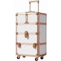 Versatile design: Dual-function layout lets you use the detachable case independently for mobile makeup sessions. What's included: Main trolley case, removable train case, two drawers with dividers, telescopic handle and four detachable wheels; white water-cube finish. Organised storage: Top drawer fits tools and brushes, while the lower drawer offers adjustable dividers for custom layouts. Perfect for: Makeup artists, beauty enthusiasts and anyone needing stylish, portable cosmetic organisation. Spaci...