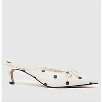 Schuh Salma Point Mule Court - White & Black Size & Fit True to size - order your usual size Standard fit Available in sizes 3 - 8 Details Salma Point Mule Court - Print by Schuh Print Pointed toe Open heel Kitten heel with low height Bow detail Slip on fastening Lining: Other Materials Sole: Other Materials Upper: Other Materials