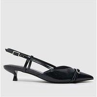 Schuh Sybill Kitten Heel Size & Fit True to size - order your usual size Standard fit Available in sizes 3 - 8 Details Sybill Kitten Heel by Schuh Navy Pointed toe Open heel Front strap with buckle detail Kitten heel with low height Slingback strap Buckle fastening Lining: Other Materials Sole: Other Materials Upper: Other Materials