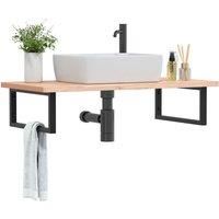 The wall mounted basin shelf securely attaches to the wall, providing an elegant and space-saving solution for your bathroom. Sturdy and long-lasting: This basin shelf is combined with a steel structure and a solid beech wood top, making it sturdy, stable, and long-lasting. Space-saving: The floating basin shelf has ample space to store creams and small items. Thanks to the rectangular shape, you can hang towels or other things on the support to save space. Easy to use: The countertop comes undrilled to...