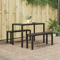 The Stylish Black Outdoor Bench is perfect for outdoor spaces, making meals comfy for you and your mates. This modern seating option is crafted from quality metal and has a lovely matte finish. It can hold up to 300 kg, so it's steady and safe. Its medium size fits well on balconies, patios, and gardens, adding a nice touch to their look. Best for adults, this bench mixes a simple design with practical features for outdoor fun. Its weatherproof nature and easy assembly make it great for year-round use....