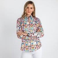 This is a Butterfly Women's Print Shirt made from high-quality, breathable fabric. The shirt features a vibrant and colourful butterfly print, adding a lively touch to any outfit. Designed for both comfort and style, it has a classic collar, button-down front, and long sleeves, making it suitable for both casual and formal occasions. The tailored fit accentuates the body while allowing ease of movement, perfect for pairing with trousers, skirts, or jeans for a chic, elegant look.Model Number: CLW2145