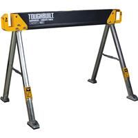 * 100% steel construction. 2 x 4 support arms create a sturdy jobsite table * C550 model: 1100lb capacity per horse, 2200lb per pair * Material support pegs, pivoting feet. Powder coating and zinc-plated surfaces. Easy carry handle * Includes 25 year warranty The ToughBuilt C550 Sawhorse and Jobsite Table is durable, rugged and offers unparalleled value. Constructed of 100% high-grade steel, this sawhorse has a remarkable 1100lb capacity alone, and 2200lb per pair. Features 2x4 support arms that