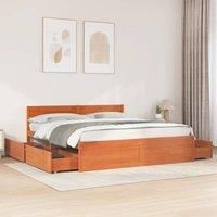 Add a modern touch to your bedroom with this bed frame with drawers! It makes a practical and decorative addition to your living space. Stable and long-lasting frame: Solid pinewood is known for its strength and durability. Its straight grains and distinctive knots contribute to its rustic charm. Plywood slats: The plywood slats provide good weight distribution, ensuring that the mattress stays in place with every twist and turn of your body during sleep. Storage function: The included bed drawers provi...