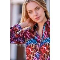 Ignite your wardrobe with our Wildfire Mirage Womens Shirt, an explosion of color and style inspired by the untamed beauty of the wild. The vivid print features an electric mix of animal patterns with striking hues of red, blue, and purplelike a blazing jungle mirage. Made from 100% satin cotton, this shirt is as luxurious as it is bold. The multicolored placket detailing and unique buttons add an extra layer of personality to this already vibrant piece. Pair it with dark jeans for an effortlessly chic ...
