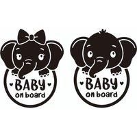2PCS Cute Baby Elephant Car Warning Stickers | Vinyl Die-Cut Decals for Windows & Bumper Decor