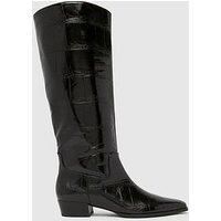 Schuh Danika Pixie Boot Size & Fit True to size - order your usual size Standard fit Available in sizes 3 - 8 Details Danika Pixie Boot by Schuh Black Pointed toe Knee length Block heel with low height Pull on fastening Lining: Other Materials Sole: Other Materials Upper: Other Materials - Manufacturers part number: WOED6